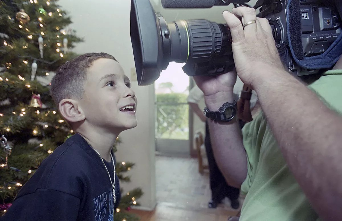 As his photography gigs dried up, Cooke reinvented himself as a feisty, often-hilarious blogger. On Random Pixels, he broke news about Miami Beach politics and internal scandals at the Herald, which he regularly attacked with a poison pen. He picked targets such as Miami Beach Mayor Philip Levine – whom he nicknamed “Mayor Dickhead” and Photoshopped a NSFW image to match – and found sources to leak embarrassing stories that daily journalists had to follow. Elián González smiles for reporters. See more photos from Bill Cooke’s archives. Photo via the Bill Cooke archives