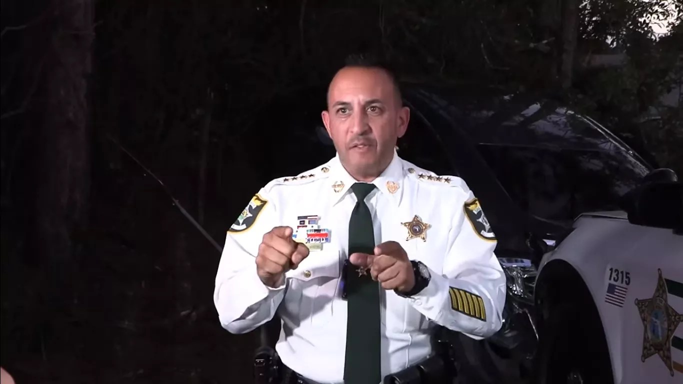 Lee County Sheriff Carmine Marceno speaks to the media at the scene of a deputy-involved crash.