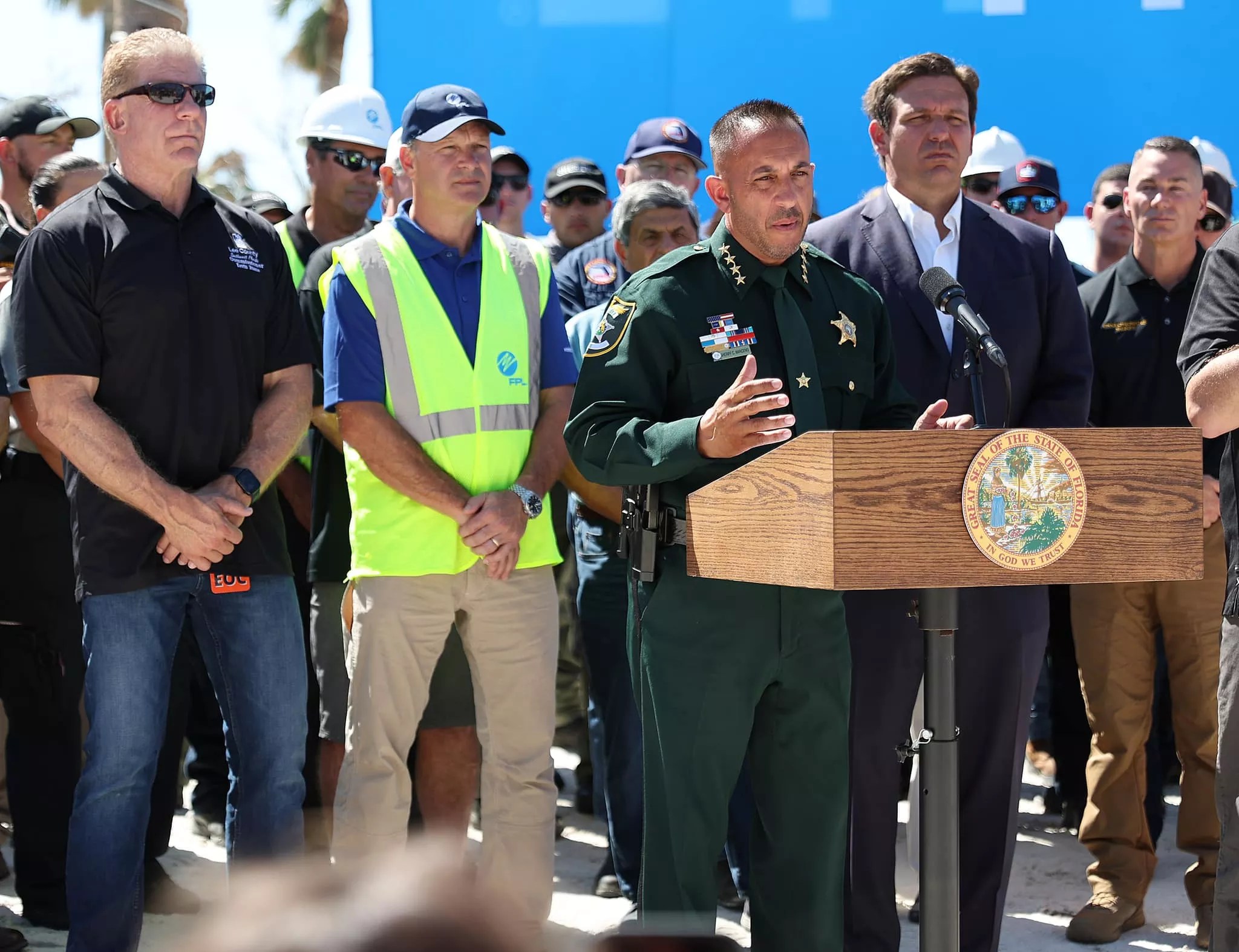 October 11 marked a milestone in the recovery effort as bridge access to the decimated community of Sanibel Island was restored. Marceno stood alongside Gov. Ron DeSantis to announce the reopening, with a convoy of trucks traversing the bridge in the background.