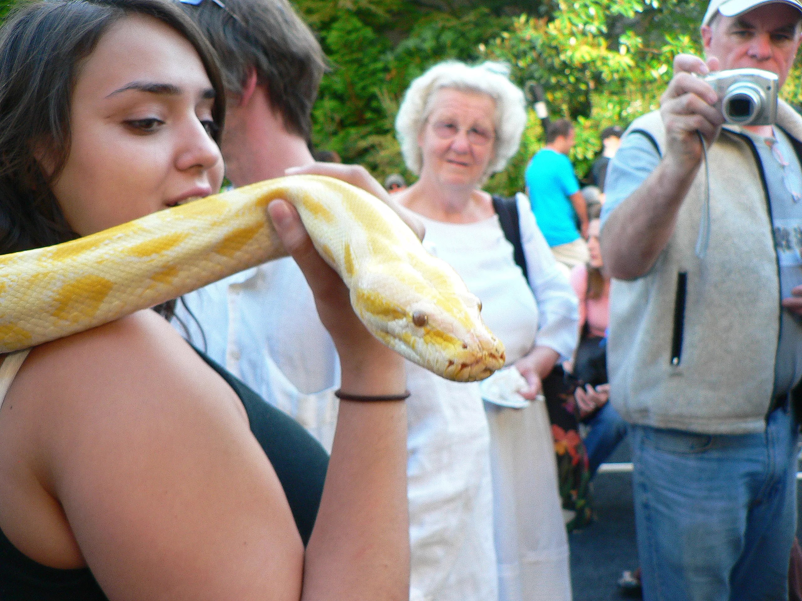 “[Samuel] was observed receiving money, being paid for allowing people to have the snake on them,” a December 12 incident report reads. (Here’s an old photo of Plut posing with one of his pythons.)