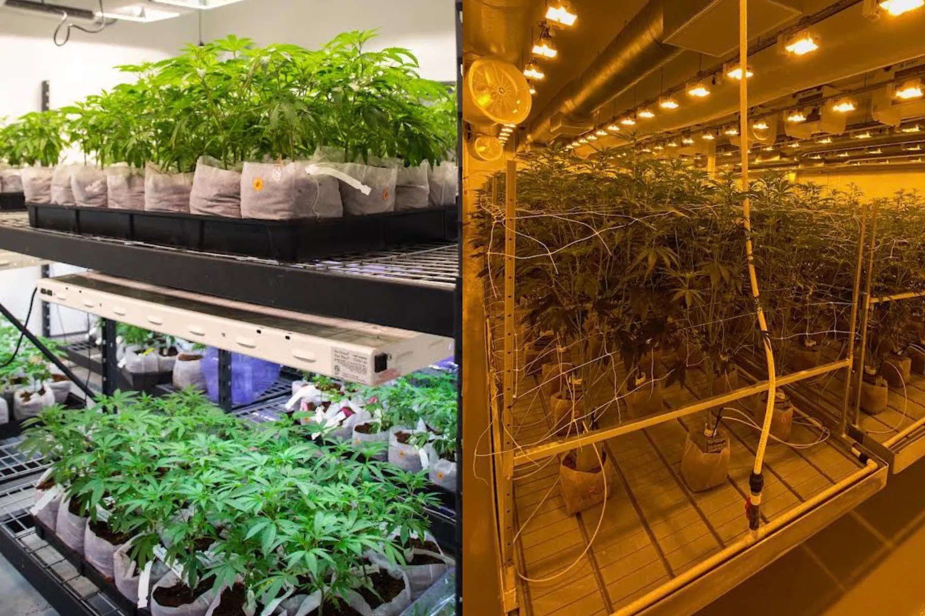 The Flowery’s cloning room (left) and indoor grow facility (right)