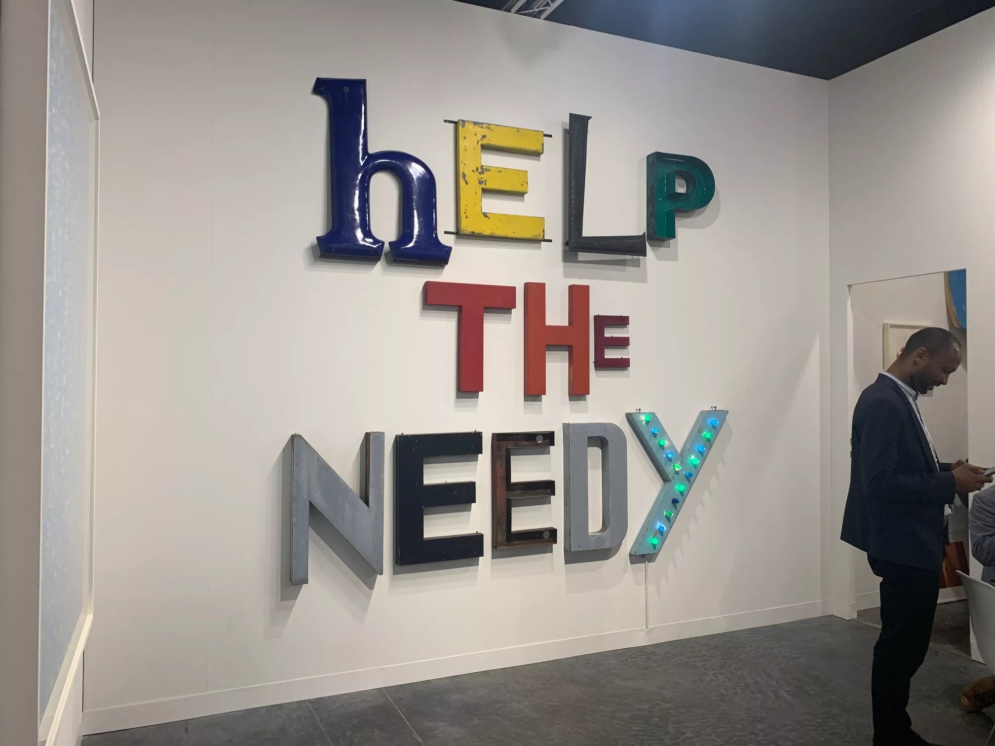 The minute you spend $25,000 or whatever the price at Art Basel for a big sign that reads, “Help the needy,” a team of IRS agents should rappel from the ceiling, handcuff you, seize all of your assets, and use them to build a shelter for homeless children.