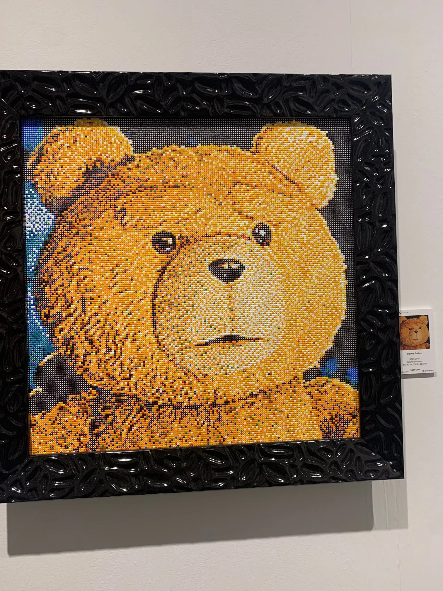 This painting of Ted from the Seth MacFarlane film series Ted – in which a cartoon bear voiced by The Family Guy guy jokes about sickle cell anemia and “black-guy sperm” spilling all over Mark Wahlberg – was priced at $3,200.