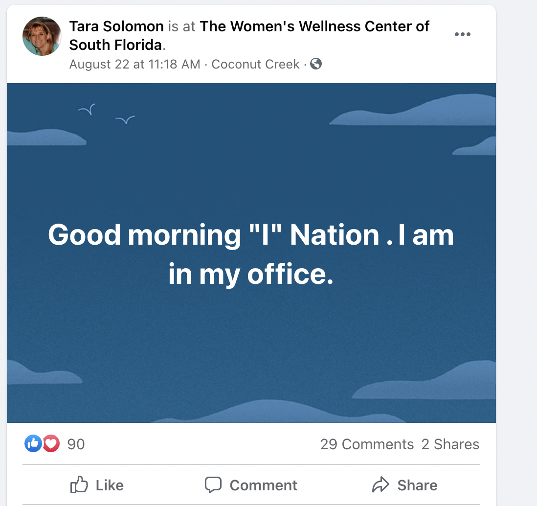 According to the Florida Department of Health, Solomon is a licensed medical doctor specializing in gynecology. According to her website, Solomon graduated from Albert Einstein College of Medicine in New York City and completed her residency at Columbia Presbyterian Medical Center She now runs the Women’s Wellness Center, a practice located in Coconut Creek, where she specializes in obstetrics, gynecology, and infertility.