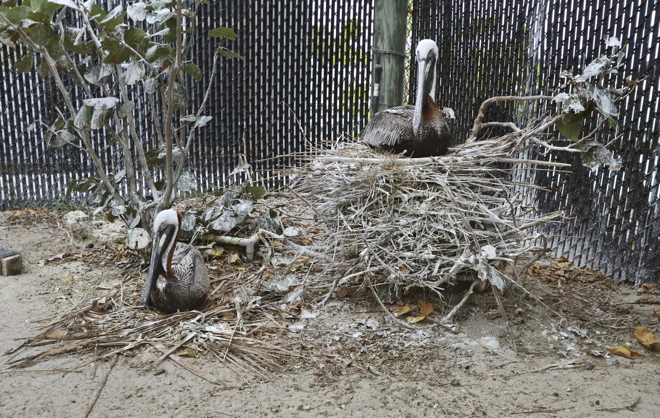Pepe and Enrique, both American brown pelicans from South Florida, have spent nearly two decades as a devoted same-sex couple. At the beginning of breeding season this past December, “the boys” — as their caretakers refer to them — built a nest together in the corner of the large pen where they live overlooking Biscayne Bay.