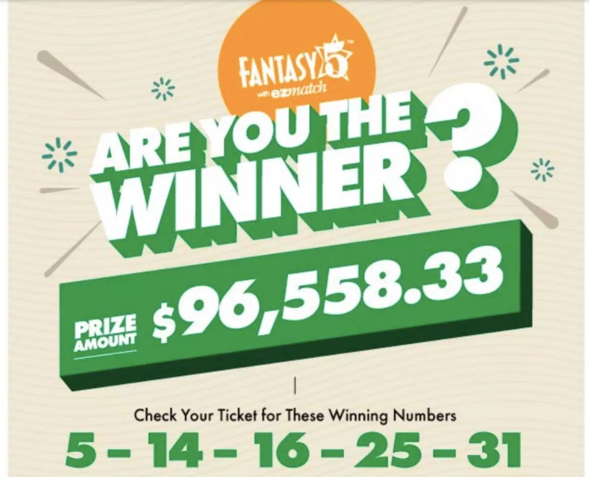 The ticket, which bears the winning numbers 05-14-16-25-31, is worth $96,558.33, according to a statement from the Florida Lottery.