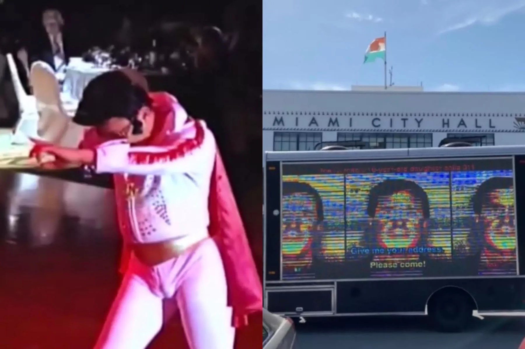 Partway through his video presentation, District 3 Commissioner Carollo analyzed a brief clip wherein Acevedo performs an Elvis Presley impersonation at a fundraising event in Austin, complete with cape, frills, and white pants that were maybe a little too showy around the ersatz Elvis’ pelvis.