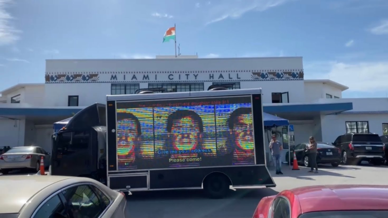 Mobile billboard courtesy of @BillyCorben at the miami commission where commissioners have been accused of criminality by the police chief. The billboard is playing the phone call from Carollo’s 10 year old daughter who called police after Carollo physically assaulted his wife. pic.twitter.com/e4pqQEtMF1