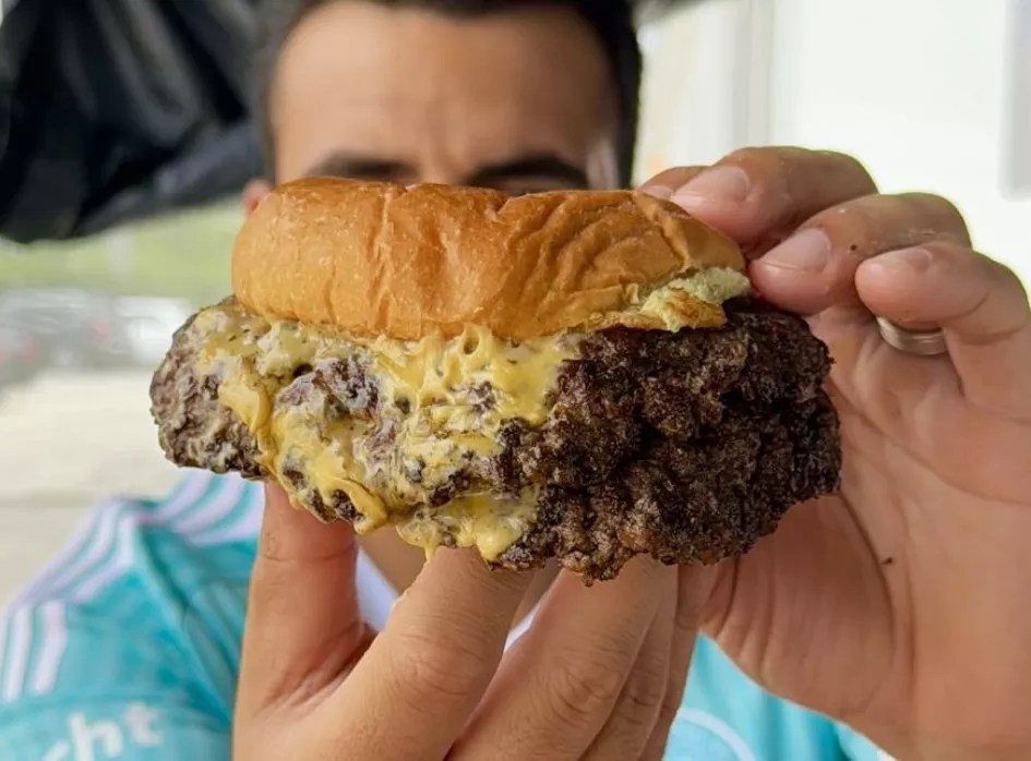 The “Jefe Smash” burger from Lala’s Burger and Fries, ordered by food blogger @Mr.Eats305 as a double patty.
