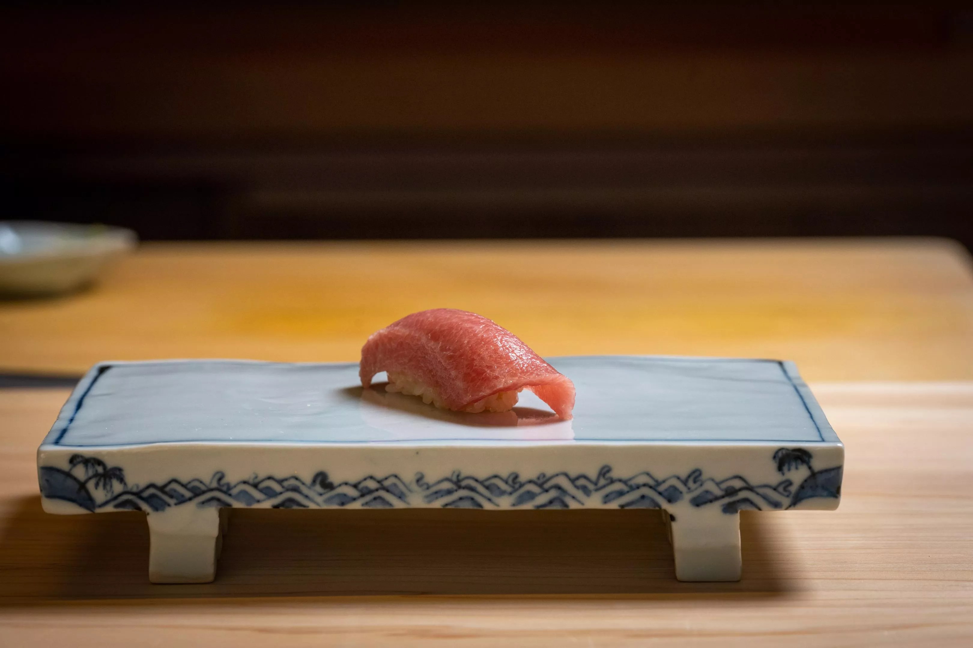 A delicate piece of nigiri by Chef Shingo Akikuni at his namesake restaurant, Shingo, in Coral Gables