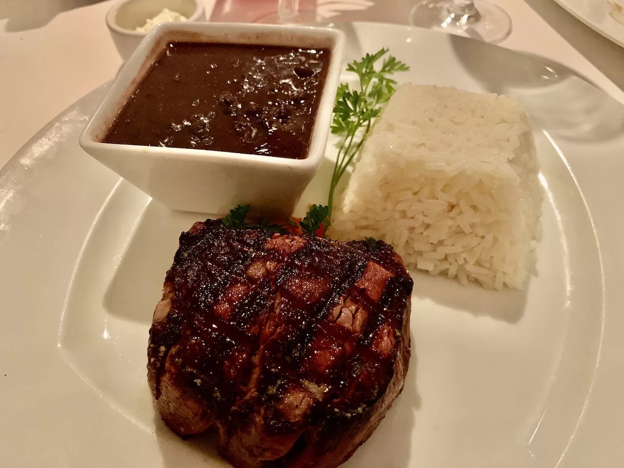 7001 Biscayne Blvd, Miami Filet mignon with rice and beans at Lola Restaurant & Grill. Lola Restaurant & Grill