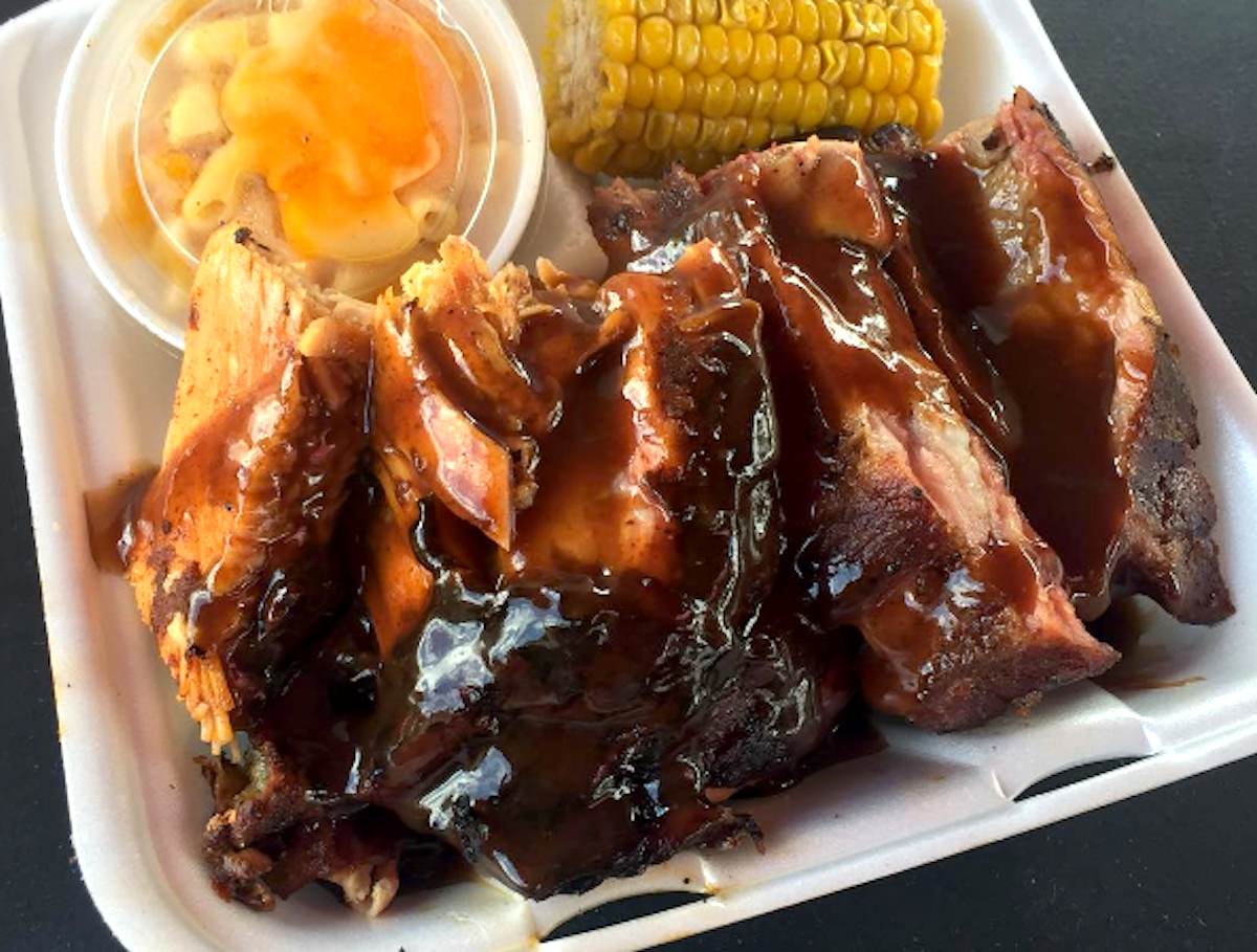 Barbecue ribs and sides at Bo Legs BBQ
