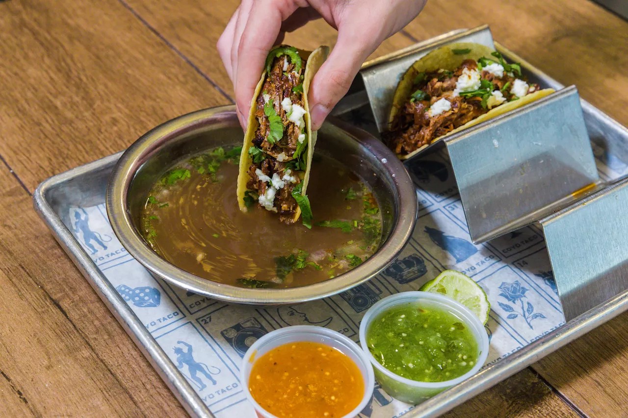 At any of the Coyo Taco outposts in South Florida this Friday, celebrate National Taco Day with plenty of dancing, drinking, and a $9 limited-edition barbacoa taco platter – a signature choice of adobo-marinated lamb shoulder, charred tomatillo salsa, and queso fresco, paired with lamb consommé.
