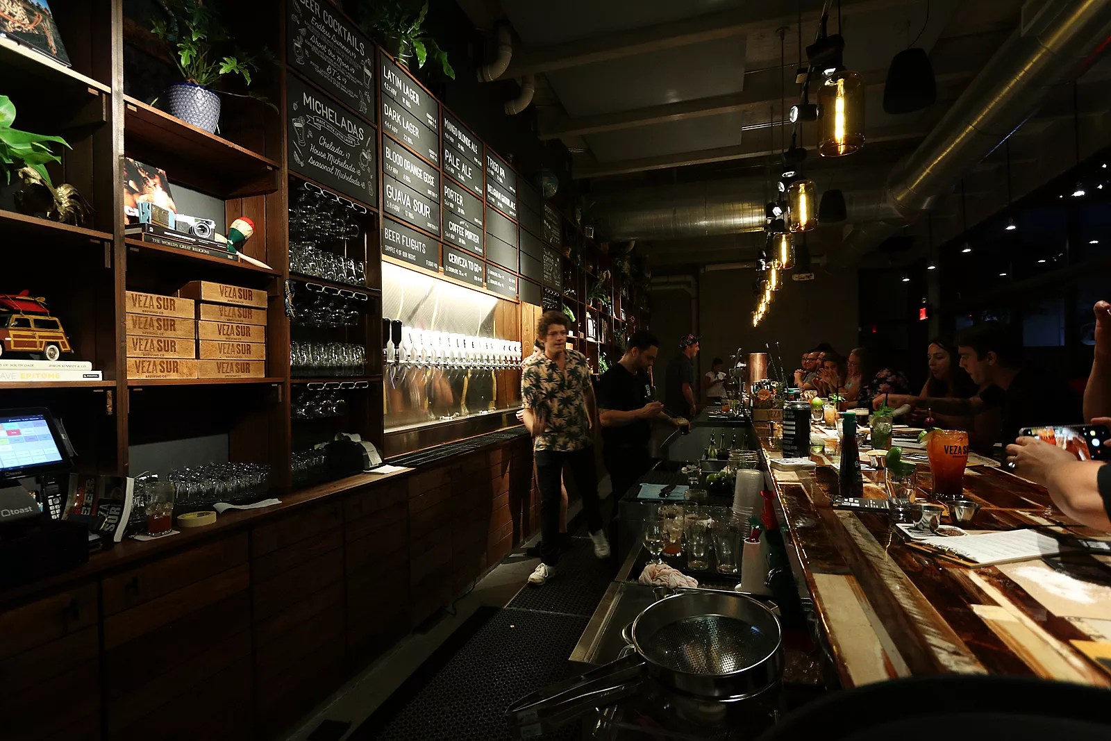 Decorated like a library, the taproom is filled with books and foliage, along with South American-inspired decor – a clear nod to the beer’s many pan-American ties.